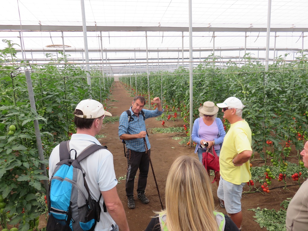 He organises a weekly walk in the hills first stopping in his friend's tomato growing emporium next door