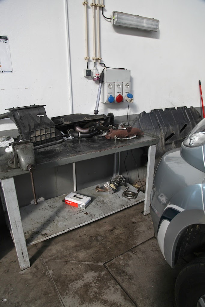 Initial concern about so many bolts on the specimen trolley turns to relief as the service manager shows me the engine is still in the van and the turbo has been removed for testing
